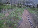 4月から堆肥入れから始まり、トラクター耕運、畝作り、マルチと潅水チューブの設置、種まき、定植、誘引用棚作りを経てここまで成長しました。